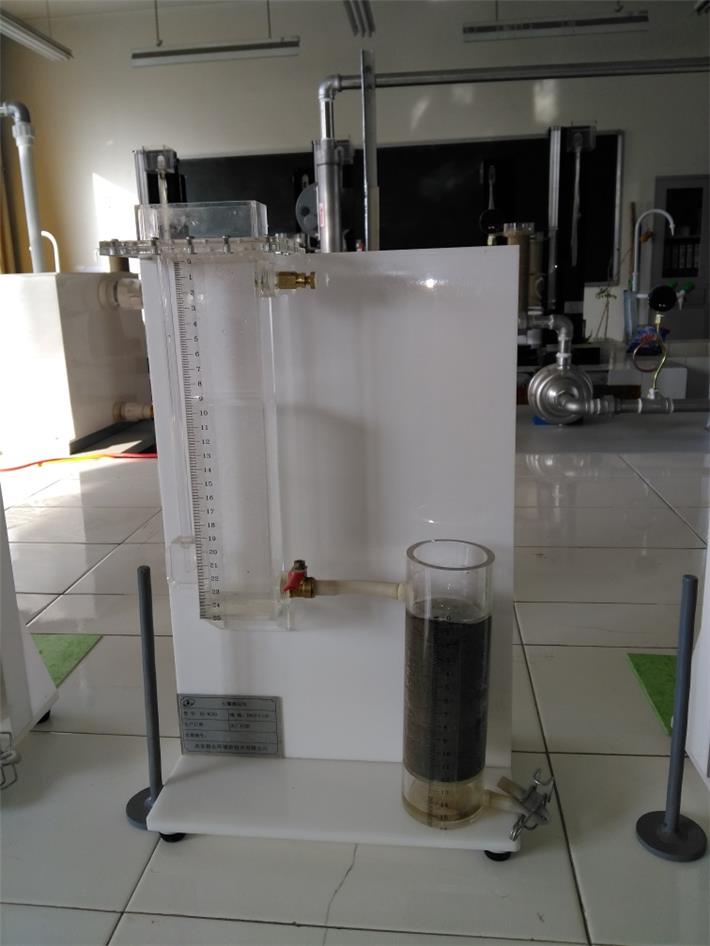 该实验装置用于在实验室内进行土壤吸渗演示实验,由直径有机玻璃土柱、供水装置、支架、夯土器等组成